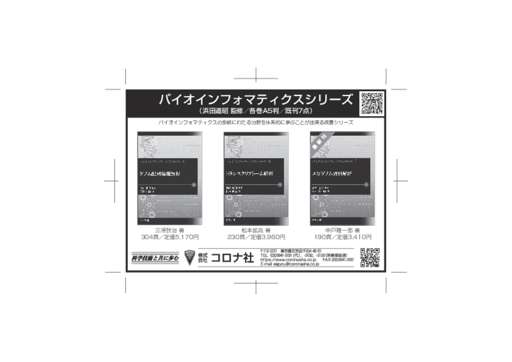 本書では、最新のゲノム解析技術について詳しく解説しました。ゲノム解析手法を学びたい生物学・医学の学生と研究者はもちろん、ゲノム解析分野に取り組みたい情報科学の学生・専門家にも役立つ内容となっています。