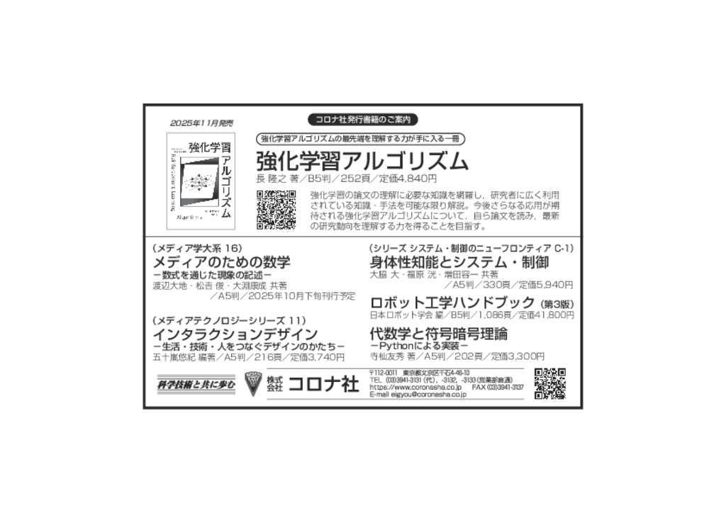 暗号理論や符号理論は、近年重要視されており、機械学習や制御分野など幅広いジャンルと絡めた研究が盛んに行われている。これらの分野を初めて学ぶ学生から、産業応用へ向け学ぶ技術者まで、幅広い方へ一読頂きたい書籍である。