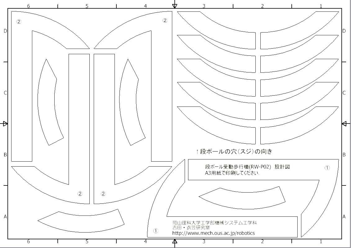 段ボール2足歩行機Ridai Passive Walker Paper02 (RW-P02) つくりかたは ここ